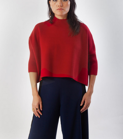 Oversized boxy sweater with fitted mock neck & 3/4 sleeves