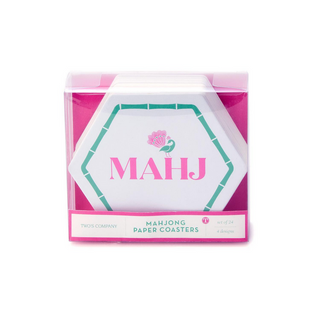 Two's Company Let's Mahj Set of 24 Heavyweight Paper Coasters in Gift Box Includes 4 Patterns