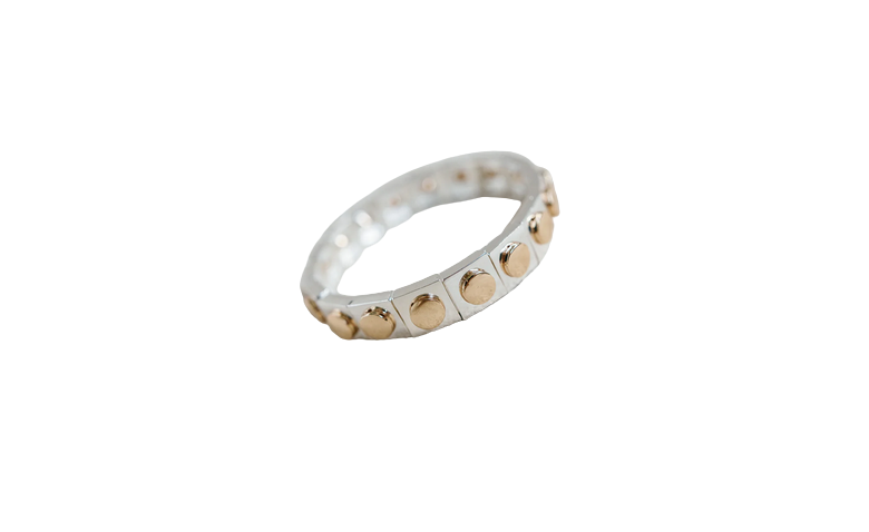 Silver and 14K gold plated stretch bracelet.