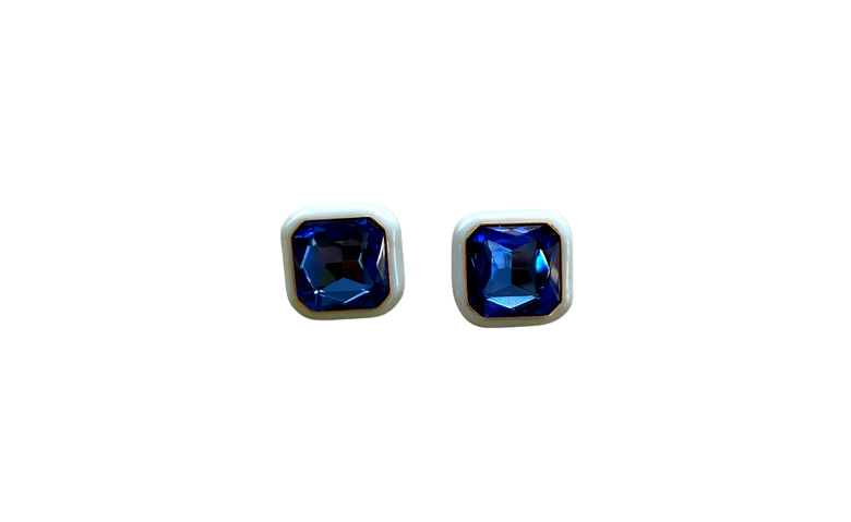 Pop of color for your everyday style. Fun and electric  oversized stud features CZ rhinestones, 18K gold plated with hand  painted enamel exterior for a polished finish.
