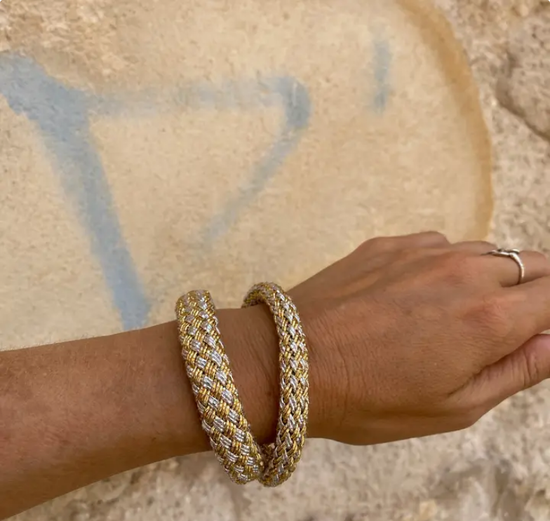 Heartknot Thin Warrior Weave Bangle in Gold & Silver (Right)