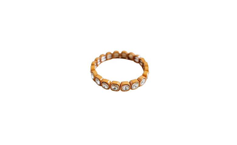 Petite enamel stretch bracelet. Adjusts to fit wrist with elastic band. Gold detail finish and signature crystal jewel setting for a little bit of sparkle!