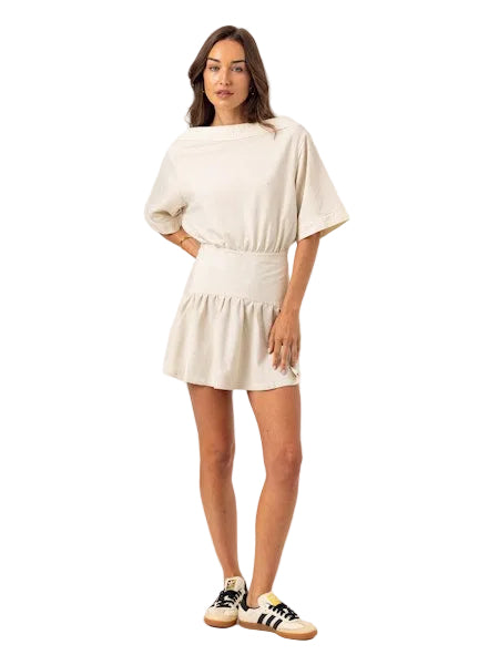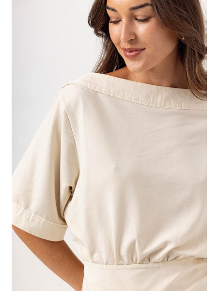 •  BOAT NECK DRESS WITH CINCHED WAIST