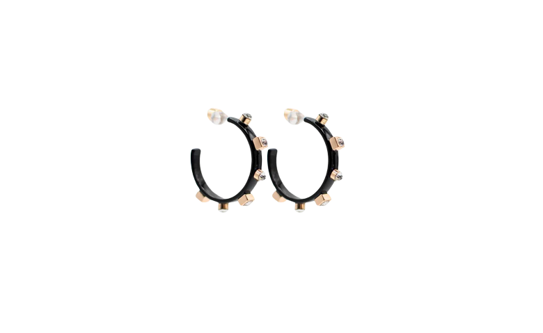 Black metal hoop with crystal jewels. Offered in petite 1" size, nickel free, led free. Lightweight hoop.