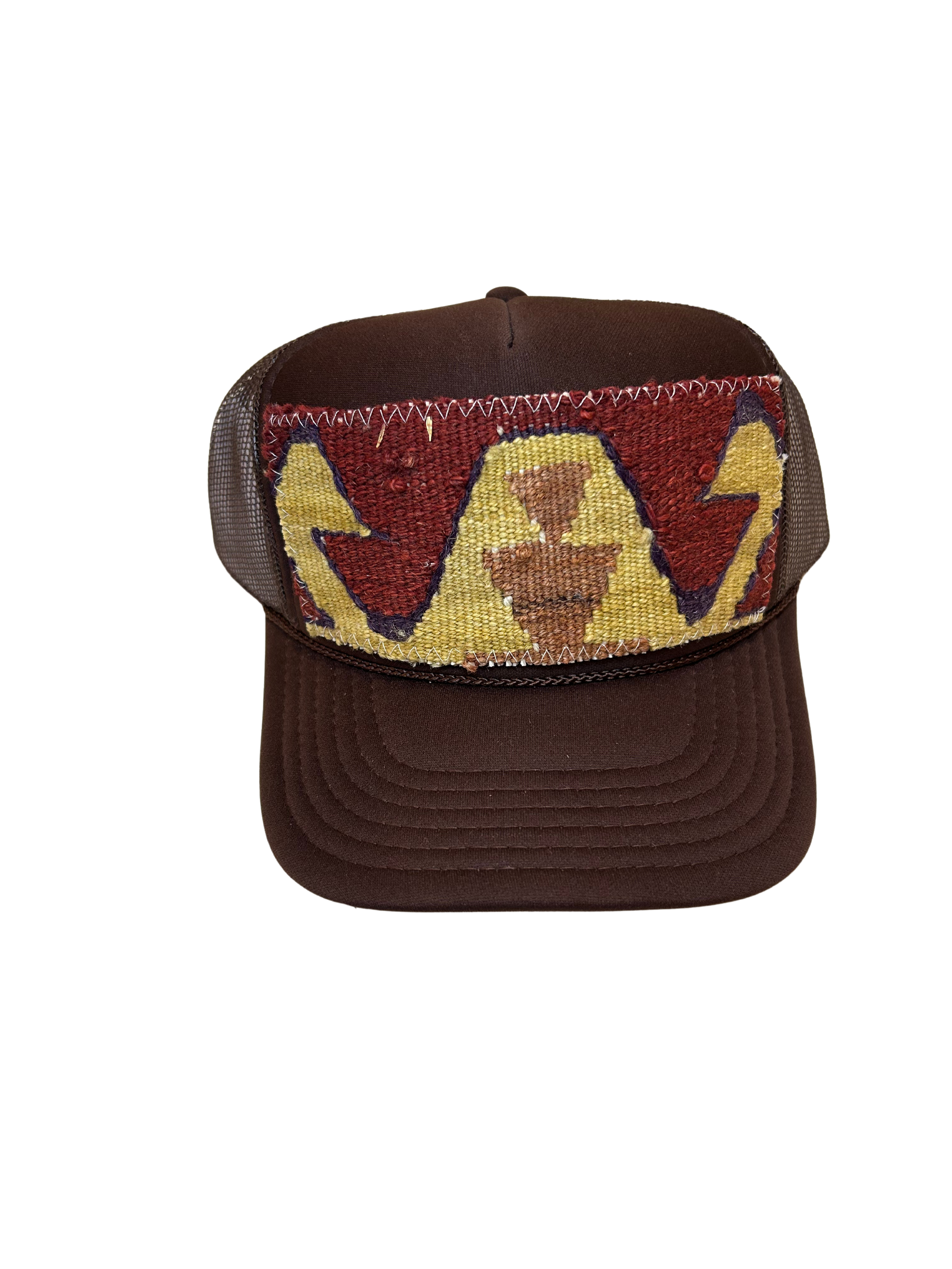 • Your easy, throw-on-and-go, trucker hat with Turkish kilim patch. No two are alike! Truckers are one size hat with high crown, structured bill and mesh back with adjustable snaps.