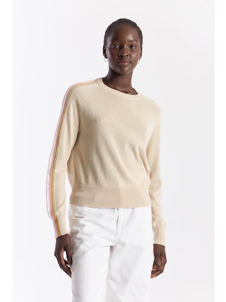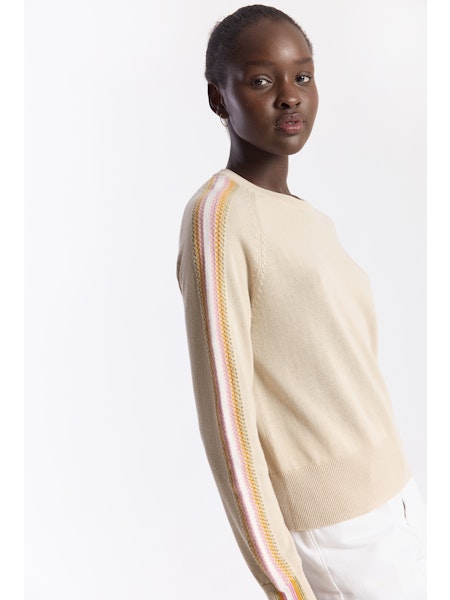 Brodie Geo Sleeve Crew in Calico / Tangerine