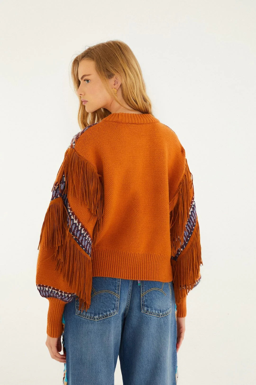 Farm Rio Arabesque Scarf Fringe Knit Sweater
