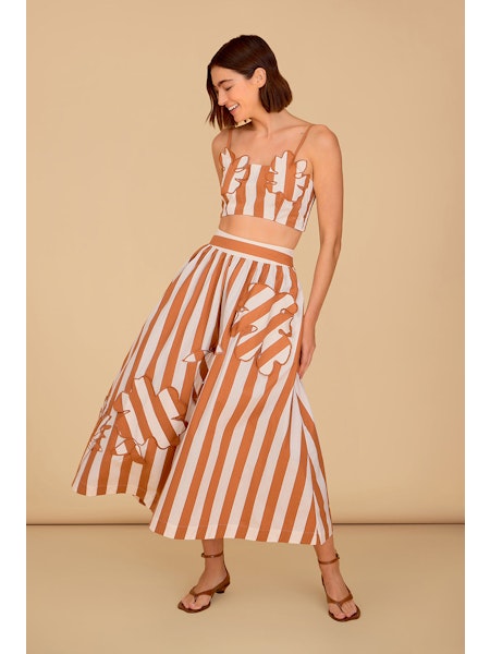 The Kit Skirt blends ease and charm with its flattering high waist. Designed with a full, flowy silhouette and soft gathering at the waistband, it moves beautifully and pairs effortlessly with both elevated tops and simple tees.