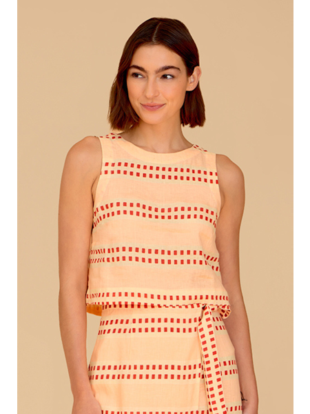 - The Dani Top is a polished yet playful staple. Designed with a clean, boxy silhouette, it features a flattering boat neckline, keyhole back, and an easy cropped length that pairs seamlessly with high-waisted shorts or skirts.