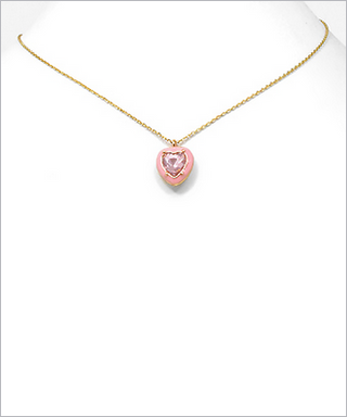 Monkee's Jewelry & ACC Glass & Heart Charm Necklace / 4 Color Options