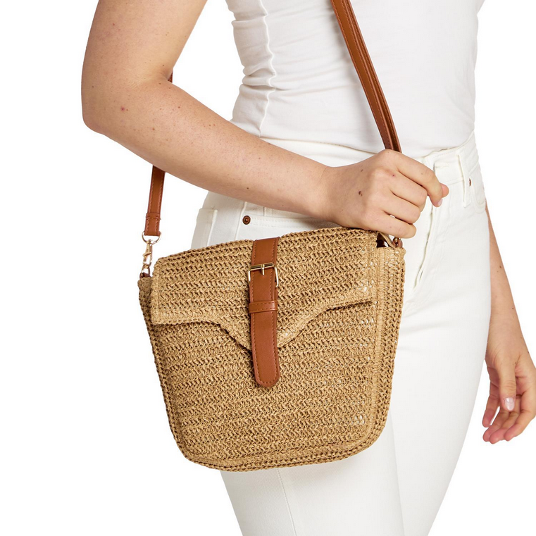 • Elevate  your beach chic style with the 2Chic Carried Away Raffia Crossbody Bag.  Crafted from sustainable materials like paper and vegan leather, this  bag effortlessly blends modern design with coastal vibes. At 9" wide and  10 1/2" long, it's the perfect accessory for a day by the sea or a  stroll through town. Handcrafted with care, this crossbody bag is as  durable as it is stylish.